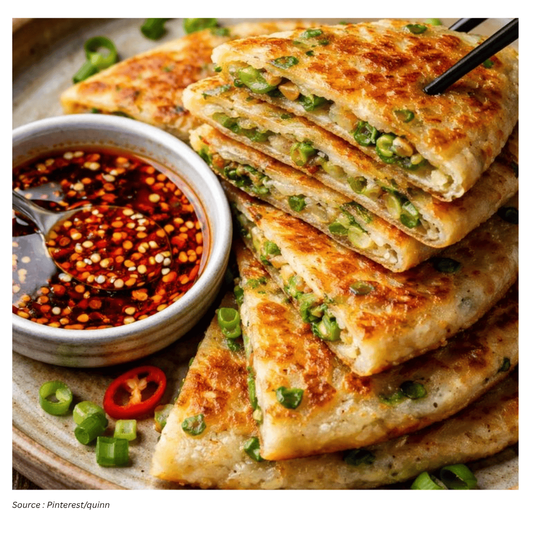 Scallion pancakes are one of those dishes that can disappear from a table faster than you expect. If you’ve ordered them at a Chinese restaurant, you already know the appeal: a pancake that shatters slightly at the edges, reveals soft layers inside, and carries the sharp, fresh bite of scallions throughout. They’re easy to pick up, easy to share, and just as enjoyable at room temperature as they are straight from the pan.