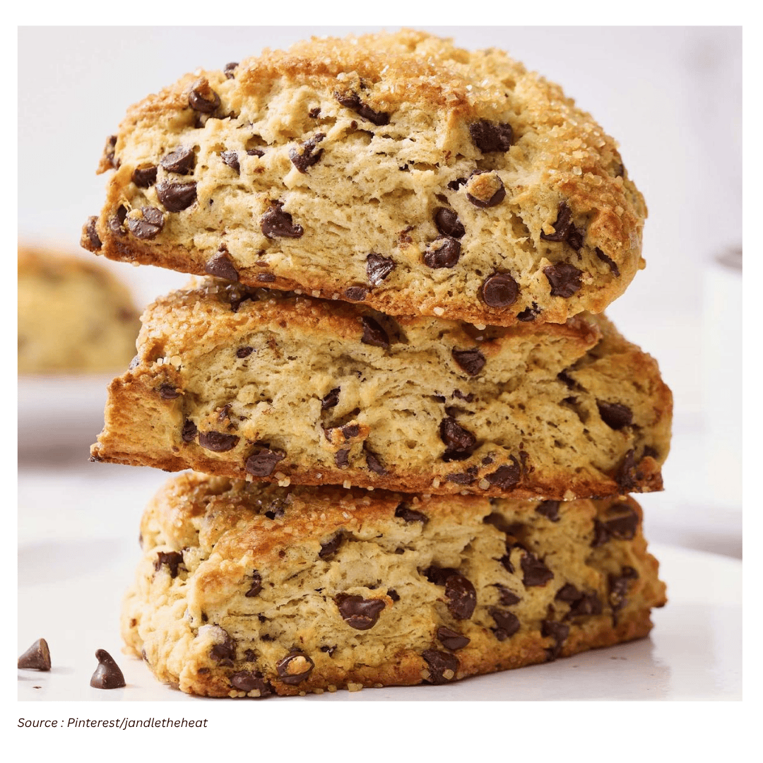 However, there’s room to adapt. In this approach, the recipe is intentionally “Americanized” by omitting the egg. The result is a lighter, flakier texture—closer to a biscuit in its layering, but still clearly a scone thanks to the gentle sweetness and the chocolate chips. If you enjoy scones that feel airy rather than heavy, leaving out the egg is presented as a deliberate choice rather than a compromise.